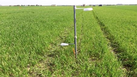 Photos de capteurs installés dans des parcelles pour mesure de la volatilisation de l’Ammoniac