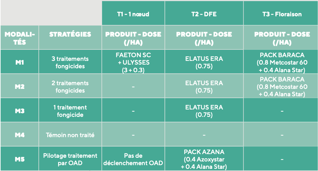 • Evaluer l’efficacité d’un pilotage fongicide par OAD et/ou par intérêt des T1-T2- T3