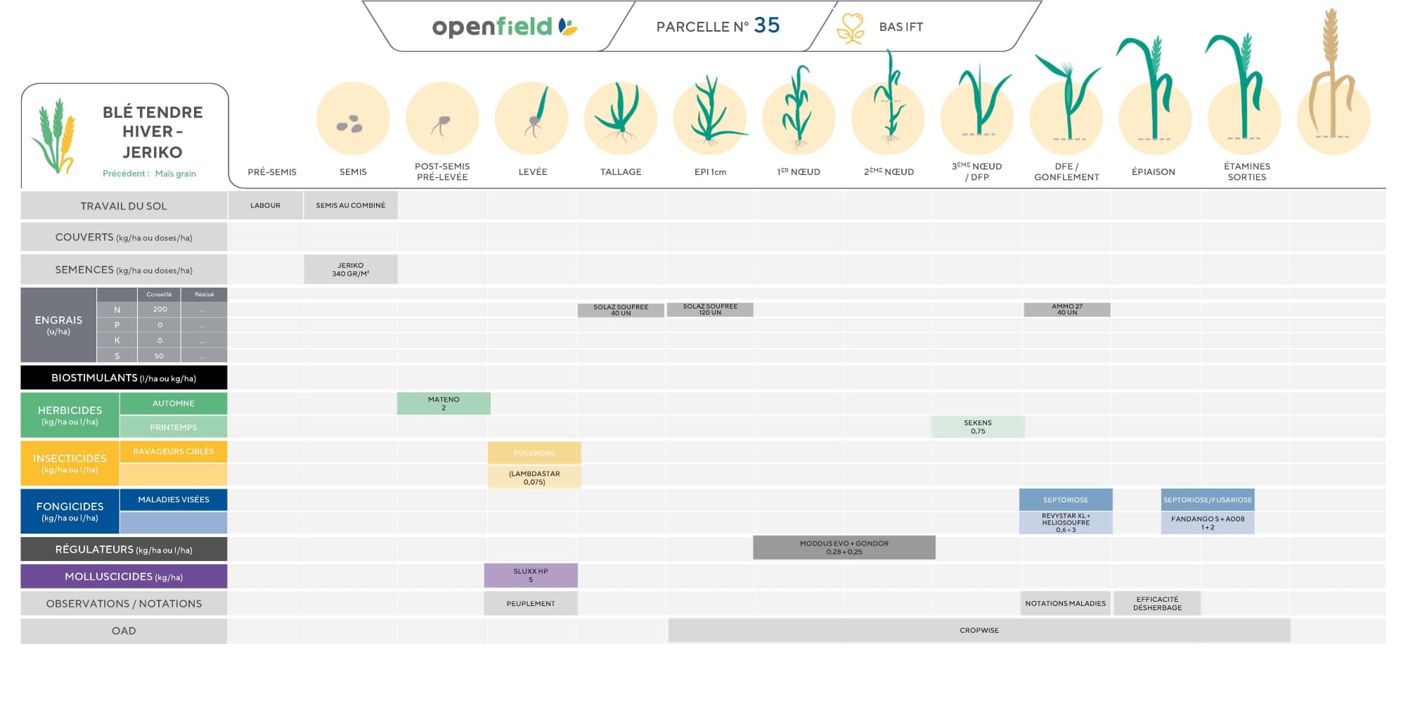 Le calcul CEPP inclue les couverts, les semences, les produits appliqués sur la culture, les OAD, et désherbage mécanique.