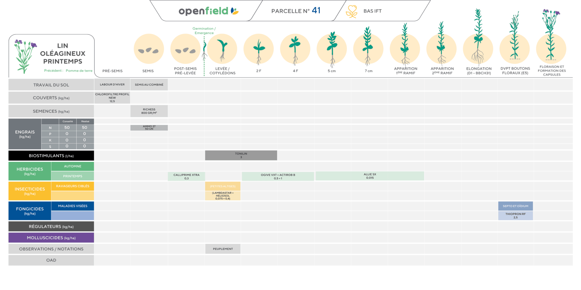 Le calcul CEPP inclue les couverts, les semences, les produits appliqués sur la culture, les OAD, et désherbage mécanique.